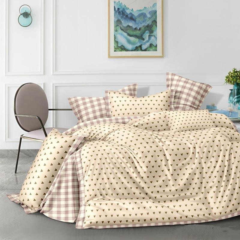 Постільна білизна сатин картаті сердечка meriset - двоспальний на резинці