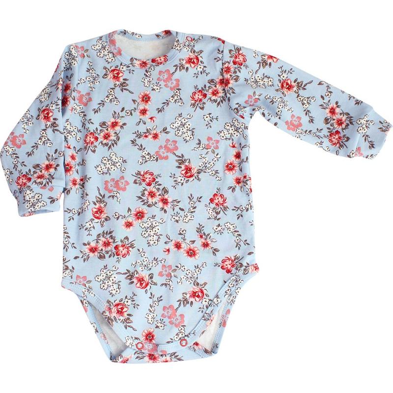 Боди на длинный рукав голубой с цветами интерлок от тм ladan