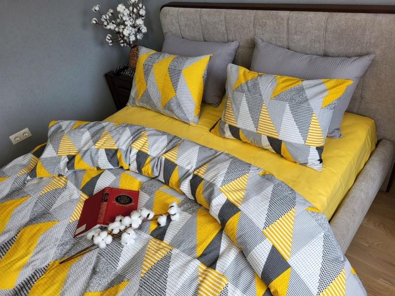 Постільна білизна ранфорс-жатка калейдоскоп жовтий мікс двоспальний євро