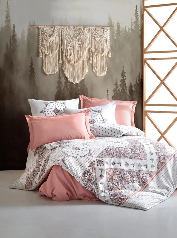 Найшвидший спосіб оновити спальню і зробити її максимально комфортною - це додати текстиль, сучасних кольорів і фактур. Гарне постільна білизна здатна кардинально змінити вигляд будь-якої кімнати. Турецька якість Тканина ranforce для постільної білизни - відмінний вибір для всіх покупців. Цей матеріал гіпоалергенний, тому безпечний для дітей. Завдяки інноваційному плетіння тканина характеризується високою міцністю, зносостійкістю і м'якістю. Білизна не змінює свого зовнішнього вигляду після прання і прасування. Добре пропускає повітря, тому ranforce - це матеріал, який «дихає» разом з вашою шкірою. Тканина щільна і гладенька, ваша білизна буде завжди мати презентабельний вигляд. Комплект виконаний в сучасному стилі, тому прикрасить будь-яку спальню. Також може служити прекрасним подарунком для друзів, близьких і колег. Тканина ranforce Ranforce - інноваційний матеріал, який відрізняється довговічністю, гладкістю, міцністю плетіння. Цей тип тканини відноситься до високоякісної типу текстилю, тому сировина проходить декілька етапів очищення. Завдяки особливій технології плетіння тканина виходить досить щільною і гладкою, приємною на дотик. Матеріал не деформується при пранні, а також тривалий час зберігає первинний вигляд. Переваги - Щільність і міцність матеріалу. - Висока зносостійкість. - Екологічність (100% натуральний склад). - Гладкий, приємний на дотик матеріал. - Добре поглинає вологу. - Відмінна терморегуляція (зберігає тепло, дозволяє тілу дихати). Матеріал Бавовна Колір Біло-рожевий Розміри (ДхШхВ) Підодіяльник - 200х220 см Простирадло - 240х260 см Наволочки (2 шт) - 50х70 см Упаковка Подарункова коробка Тип застібки Гудзики Додаткові характеристики Тип тканини: ranforce (100% бавовна) Комплектація Підодіяльник, простирадло, наволочки (2 шт) Тип Постільна білизна Призначення Для дому Країна виробник товару Туреччина Країна реєстрації бренду Туреччина
