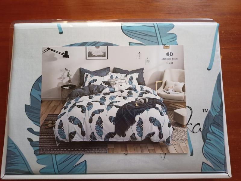 Склад 80% бавовна 20% поліестер, Матеріал сатин. Розмір Євро - 799 грн Підодіяльник 200*220 Простирадло - 220*240 Наволочки - 70*70(2 шт) Постільна упаковано в коробку + подарунковий пакет.