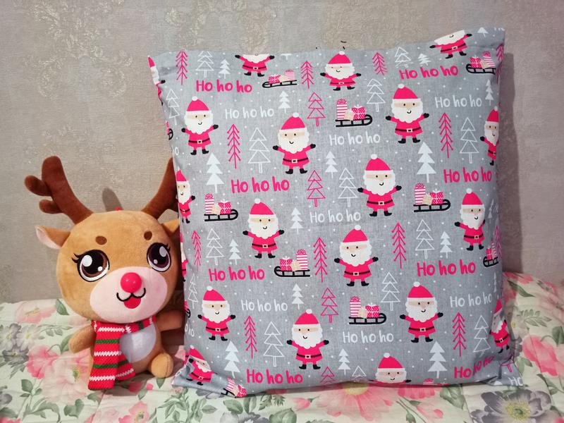 Новорічна наволочка на декоративну, диванну подушку 40х40 см на блискавці. Тканина польська бязь. 100% бавовна. Блискавка захована під клапаном і її не видно. Розмір може бути інший: 35х35, 45х45, 50х50 см і т.д. Ціну уточнюйте. Розмір завжди роблю більший на 0,5-1 см для об'єму подушки. Наприклад розмір 40х40 буде 41х41 см.