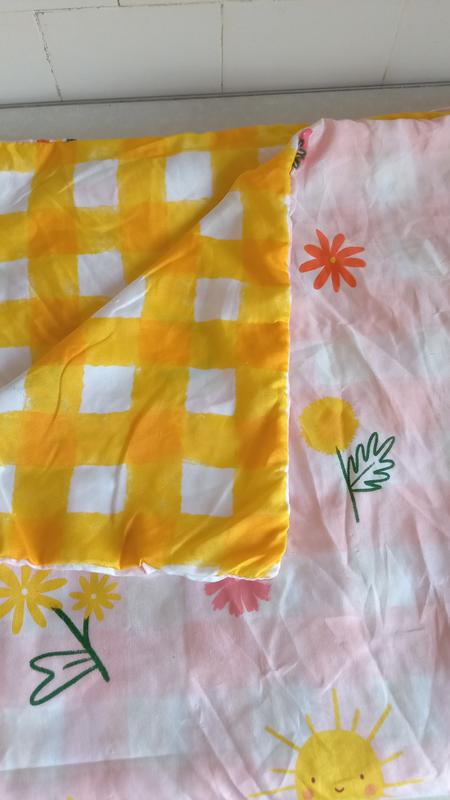 В наличии есть пододеяльник в очень хорошем состоянии. Дырок, пятен нет. Размер 125*195. На пуговицах. Двухсторонний: одна сторона желто-белая клетка, другая - рисунки. Запросто можно использовать в качестве покрывала на односпальную или детскую кровать. Производство Пакистан. 100% полиэстер. Цена символическая.