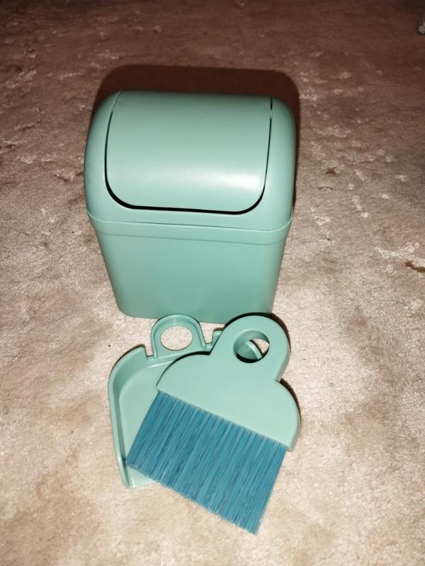 Компактний дизайн набору для чищення займає мало місця та робить прибирання вашого столу простішим та приємнішим. Щітка поміщається в совок, а завдяки отворам в ручках їх легко повісити на гачок. Маленьке відро для сміття ідеально підходить для невеликих шматочків паперу та обрізків гумки. Відро для сміття легко спорожнити, оскільки кришка знімна. Тіло: Поліпропіленовий пластик волосся: ПЕТ пластик. Висота відра 12 см. Ширина 10.
