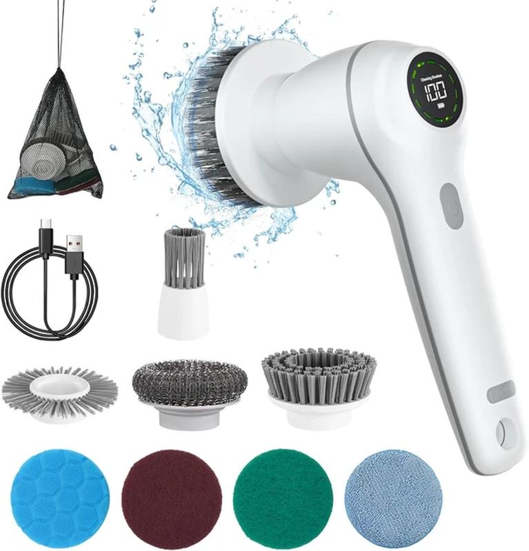 Електрична щітка STX-828 8 насадками, Бездротова електрична щітка для чищення STX-828 з 8 насадками призначена для вологого прибирання плитки, лінолеуму, вікон та інших гладких поверхонь. Ви можете використовувати електричну щітку з різними миючими засобами. Бездротова обертова щітка для прибирання STX-82 має професійну водонепроникну конструкцію рівня IPX7, виготовлену з міцного та надійного матеріалу ABS для забезпечення повної водонепроникності. Це не тільки підвищує ефективність очищення, але й гарантує довговічність і безпеку скрубера з обертовим віджимом. В комплекті 8 універсальних насадок для прибирання, розроблених для конкретних завдань прибирання, наприклад очищення лінії затирання або видалення плям. Він легко адаптується до різних приміщень для чищення, включаючи плитку у ванній кімнаті, кухонну підлогу, раковини, ванни, душові та автомобілі. Наявний кольоровий дисплей індикатора заряду акумулятора, оснащена зарядним портом USB-C для швидкої та зручної зарядки. Контроль 2 швидкостей: оснащений потужним акумулятором великої ємності 2500 мАг, цей потужний скрубер забезпечує постійне та надійне живлення протягом тривалого часу. Скрубер має дві регульовані швидкості: 320 обертів за хвилину для ефективного чищення без бризок і 370 обертів за хвилину для потужного та ретельного видалення плям. Електрична щітка для чищення — ідеальний подарунок для рідних і друзів. Особливості: - Ємність акумулятора - 2500MAh - Час зарядки пристрою - 3-4 години (5v-1A) - 8 щіток в наборі - Довжина - 25 см - Дві швидкості - 320/370 об/хв - Розміри упаковки - 33 x 17 x 9 см - Вага упакування - 770 г