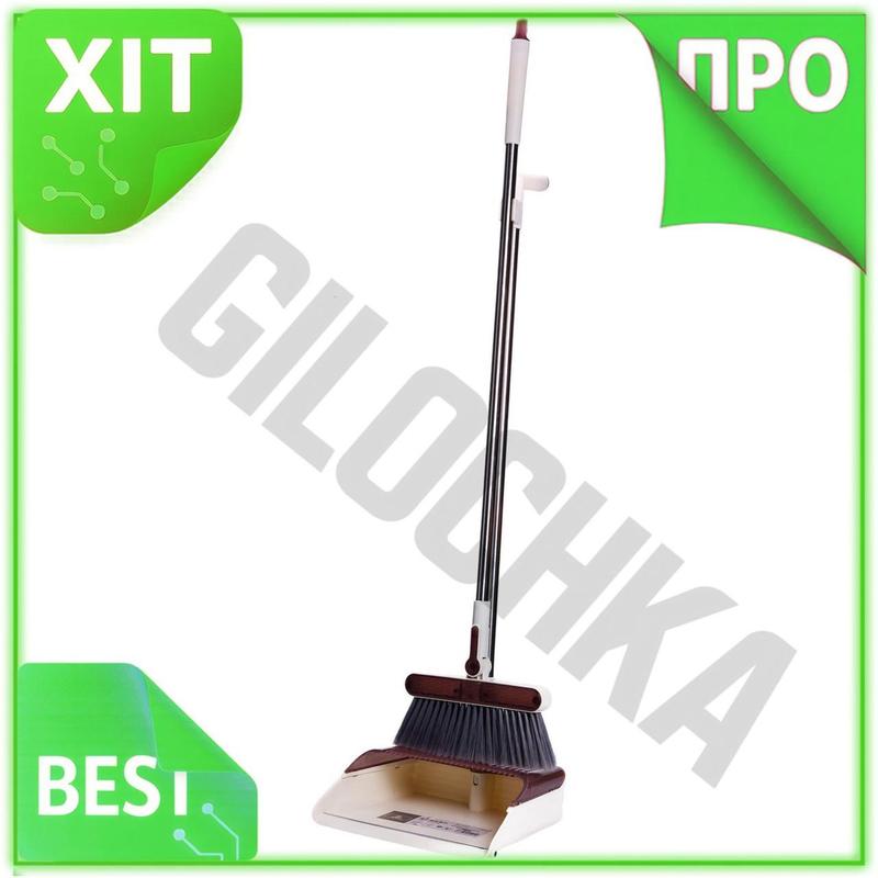 Ve комплект для прибирання віник new version та совок на довгій коричневій ручці для дому...