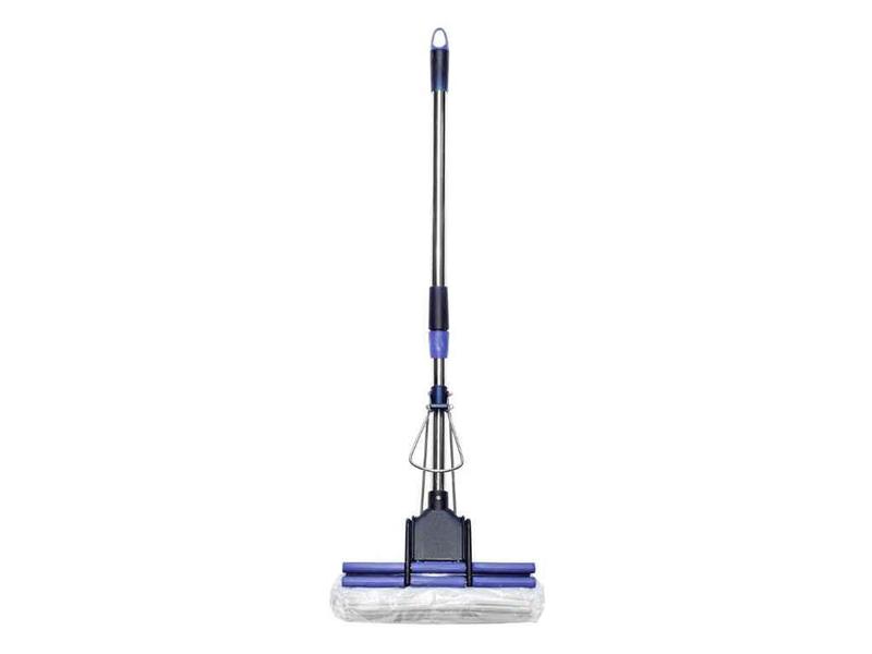 Швабра с двойным усиленным отжимом, пластиковой основой, телескопической ручкой из нержавеющей стали Состав: Нержавеющая сталь, Полипропилен, ПВХ.. Ширина Губки - 27см. Длина изделия - 86-116 см.