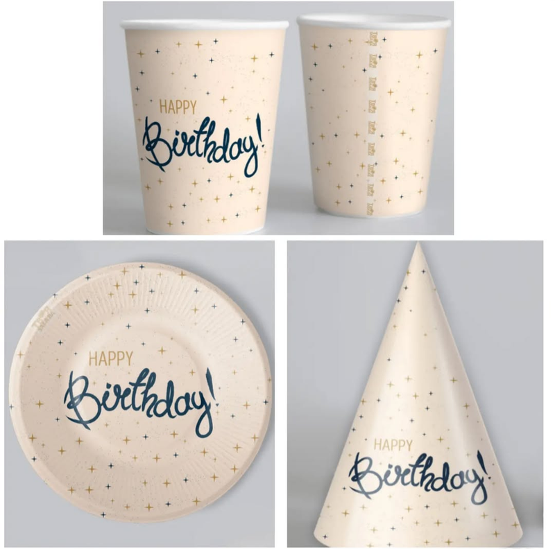 Набор праздничной посуды для дня рождения колпаки стаканы тарелки по 10 шт