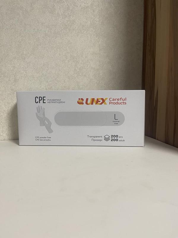 CPE -- НАДІЙНА ЗАСІБКА ЛІЧНОЇ ЗАХИСТІВ на харчових виробництвах і високо цінується флористами, ветеринарами, сушарками, в HoReCa-індустрії та господарських роботах, перукарями, косметологами, майстрами у сфері краси, кондитерами, медикаментами для огляду пацієнтів (заміна вінілових рукавичок). Рукавички CPE новинка на ринку медичних витратних матеріалів. Головна сировина для виготовлення -- це сополіефірний матеріал, який є хімічно стійким, міцним і демонструє гарну стабільність розмірів. - Рукавички виготовлені з хлорованого поліетилену - Колір білий - Не припудрені, хлоровані; - Довжина рукавичок не менш ніж 24 см; - Товщина пальців не менш ніж 0,10 мм; - Товщина долоні щонайменше 0,07 мм - Текстурована поверхня долоні та пальців; - Валик на манжеті для зручнішого одягання; - Нестерильні; - Для одноразового використання; - Упаковані по 100 пар (200 штук) у коробці. Виробник: "Unix" (В'єтнам). CPE продукція високоякісна та має широкий спектр застосування: - Стійкість до забруднень - Материал не горюч и не токсичен - Гарна чутливість під час дрібної роботи - Захист від сухості та стягування шкіри - Стійкість до різних хімічних середовищ - Забезпечення особистого захисту та гігієни - Чудова альтернатива латексним, вініловим і нітриловим рукавичкам