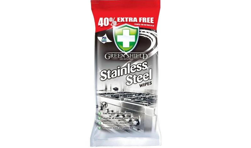 Вологі серветки green shield для поверхонь з нержавіючої сталі 70 шт