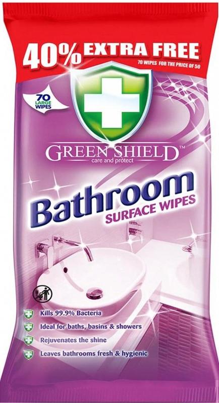 Вологі серветки green shield для поверхонь ванної кімнати 70 шт