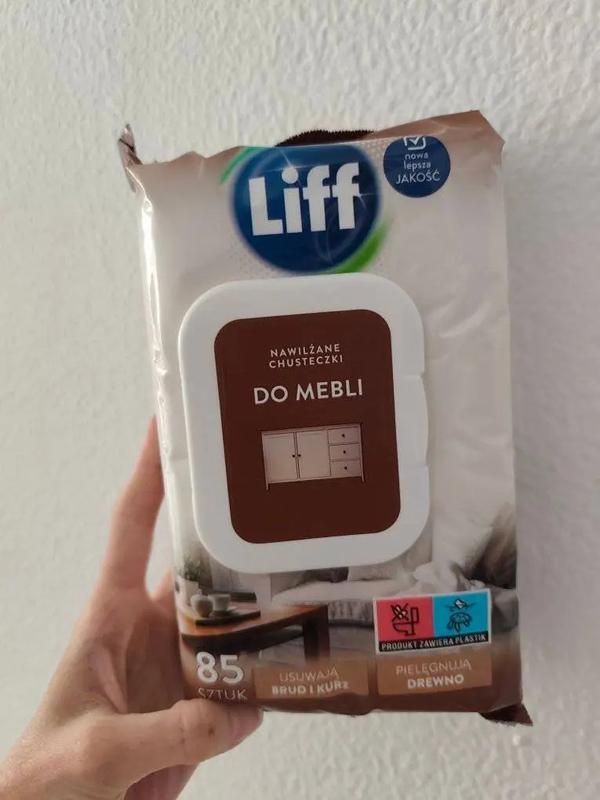 Вологі серветки для меблів Liff – зручне рішення для чистоти та догляду 🧽 ✨ Ефективно видаляють пил і бруд 🌿 Дбайливо очищують та доглядають за дерев’яними поверхнями 📦 Упаковка – 85 серветок 👌 Ідеально для щоденного використання Твоя меблі заслуговують на чистоту та блиск! ✨