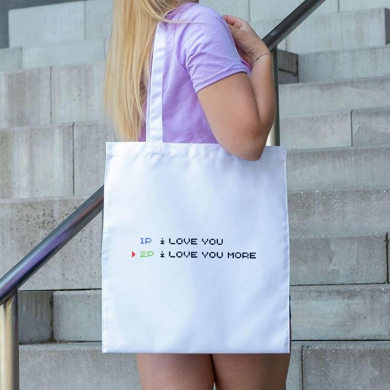 Сумка шопер із принтом "i love you more" біла|швидка доставка|