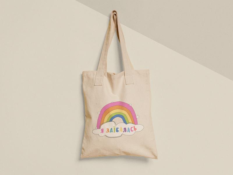 Эко сумка шопер с принтом я заїбалась радуга размер 38х40см, хлопок