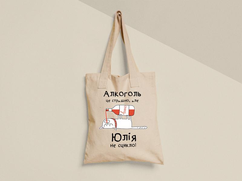 Еко торба шопер з принтом алкоголь це страшно але юлія не сцикло юля юлія, розмір 38х40см,...