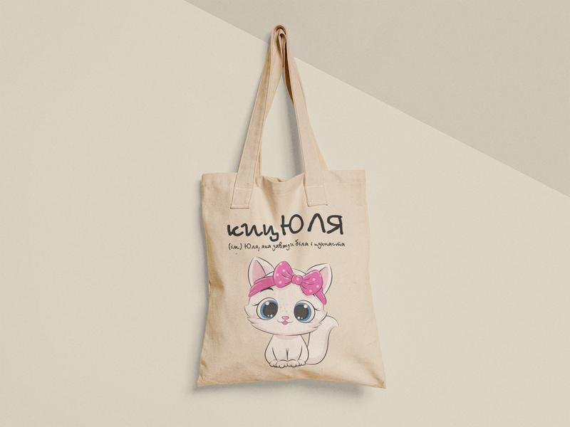 Еко торба шопер з принтом кицюля юля юлия, розмір 38х40см, бавовна