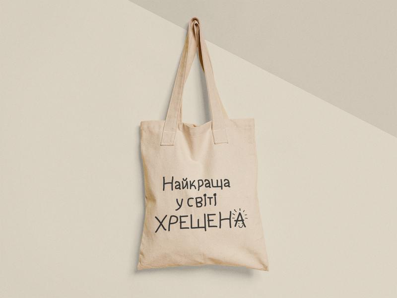 Эко сумка шопер с принтом найкраща у світі хрещена для крёстной, размер 38х40см, хлопок