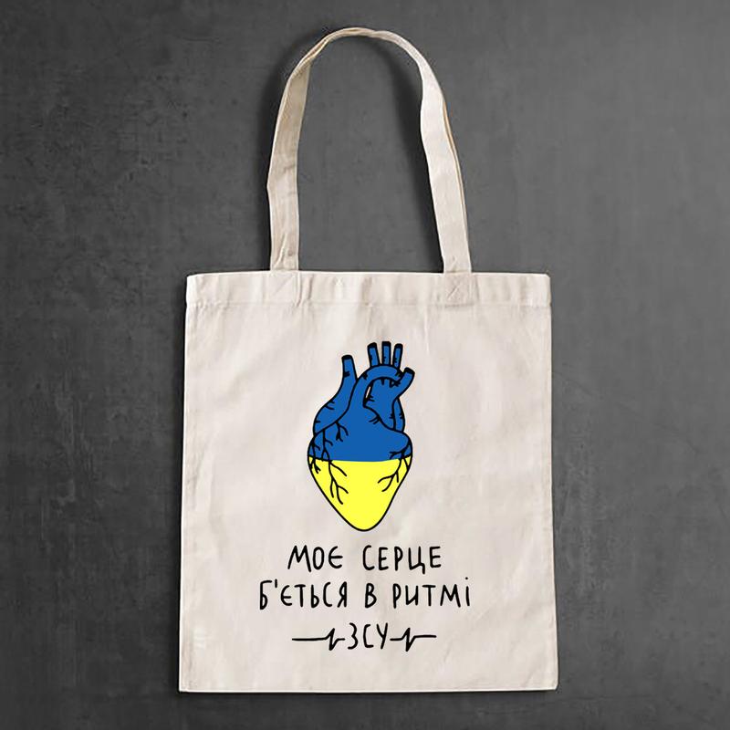 Еко-сумка, шоппер, щоденна з принтом "моє серце б'ється в ритмі зсу"