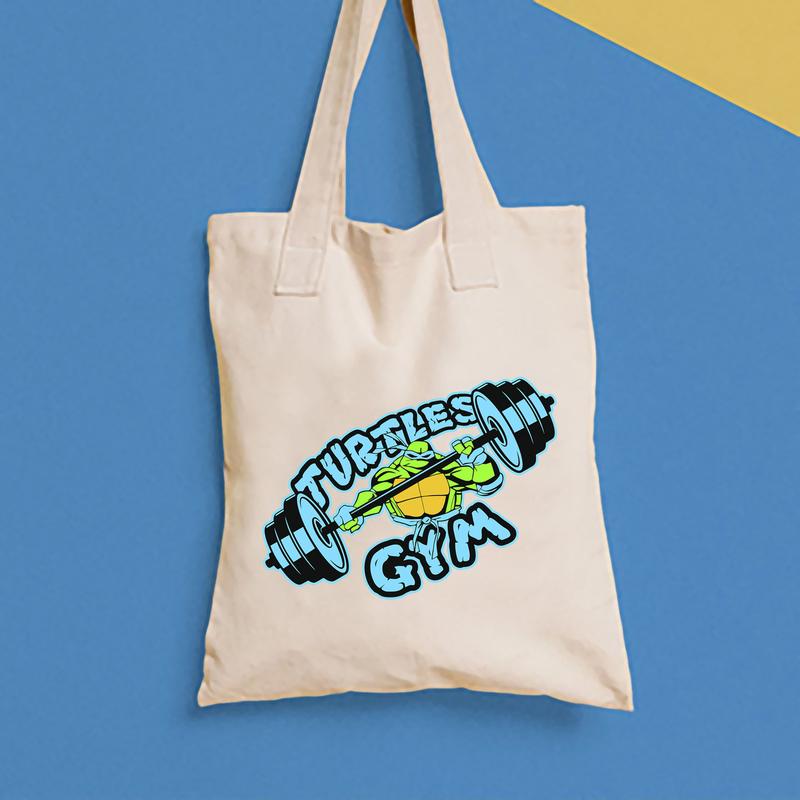 Эко-сумка, шоппер, повседневная с принтом "turtles gym" push it