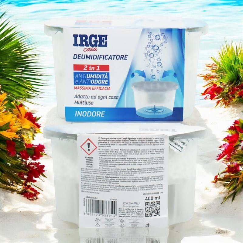 Поглинач вологи та неприємного запаху IRGE Без запаху 400мл Осушувач повітря вбирає надлишкову вологість та запобігає неприємним запахам. Це високоефективний засіб 2в1, який можна використовувати в житлових та господарських приміщеннях. Контейнер осушувача поділений на два відсіки. Нижній відсік призначений для збирання зайвої рідини з повітря, а верхній заповнений гранулами, які нейтралізують неприємні аромати. Спосіб застосування: 1. Зніміть перфорований пластиковий ковпачок. 2. Видаліть алюмінієву фольгу, яка знаходиться під ковпачком. 3. ВАЖЛИВО: Ніколи не знімайте білий аркуш. 4. Поверніть пластиковий ковпачок на місце і помістіть виріб у потрібну кімнату. 5. Коли гранули повністю розчиняться і ємність наповниться водою, відкрийте білий аркуш на поверхні та викиньте рідину, що міститься в ньому. Тривалість дії залежить від рівня вологи. Від 3 до 6 тижнів.