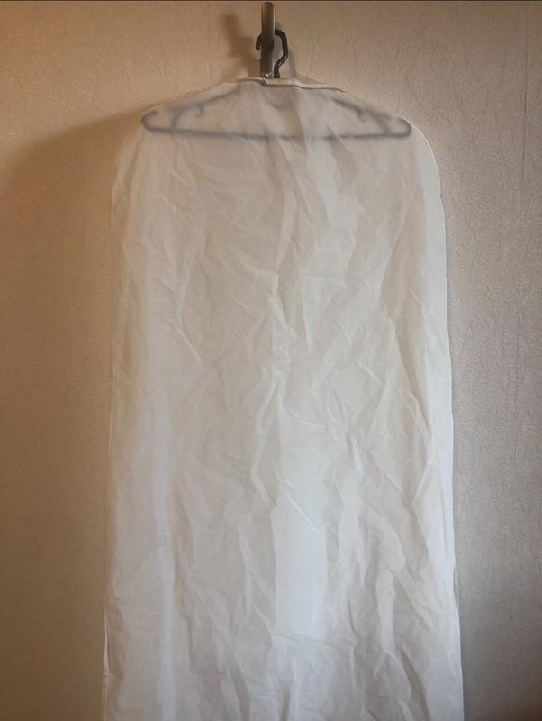 Чохол для зберігання пальто, шуби. Одна сторона-прозора, інша - біла. Є замок по всій довжині. Верх чохла має виїмку для вішалки. До низу ширина збільшується. Також має розкладні боковини - стає більш ширшим. Можна зберігати і перевозити танцювальні плаття, весільні і вечірні плаття, шуби та костюми. В ідеальному стані. Цілий. Замок робочий. Ширина вгорі чохла - 54 см, ширина внизу чохла - 77 см, довжина чохла - 182 см