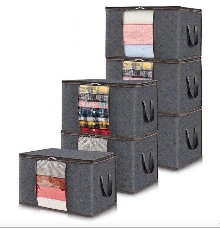 Набір сумок для зберігання -- зручно, практично та охайно! Організуйте простір удома за допомогою містких сумок для зберігання. Завдяки великому об'єму та міцним матеріалам вони ідеально підходять для одягу, постільної білизни, іграшок або сезонних речей. Компактна форма дозволяє легко розміщувати сумки у шафі, на полиці чи під ліжком. Переваги: - Місткі та зручні у використанні. - Виготовлені з міцних, зносостійких матеріалів. - Захищають речі від пилу та вологи. - Складана конструкція -- займає мінімум місця. - Підходять для зберігання будь-яких речей удома. Характеристики: - Розмір: 60×40×35 см - Кількість у наборі: 6 шт. - Матеріал: щільна тканина з посиленими швами - Оснащені блискавкою та ручками для зручного перенесення