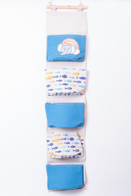 Цей органайзер допоможе навести лад і раціонально використовувати простір. П'ять містких кишень ідеально підходять для зберігання дитячих речей, канцелярії, косметики, аксесуарів та інших дрібниць, які завжди мають бути під рукою. Міцна тканина легко витримує щоденне використання та проста у догляді, а бамбукова планка забезпечує зручне підвішування та надає виробу акуратного вигляду. Основні характеристики підвісного органайзера для речей: Розмір у розкладеному вигляді: 10×95 см; Розмір у складеному вигляді: 20×18×7 см; Матеріал: тканина+бамбук; Кількість секцій: 5. Особливості підвісного органайзера в дитячу: 5 містких кишень для зберігання. Компактність та легкість у використанні. Міцний та гнучкий текстиль, зручний у догляді. Бамбукова ручка для підвішування. Такий органайзер стане не лише функціональним помічником, а й стильним елементом інтер'єру. Він допомагає підтримувати порядок, економити простір і завжди тримати потрібні речі під рукою.