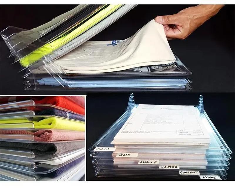 Набор органайзеров для хранения одежды EZSTAX Имеете очень много одежды, для которой в шкафу сложно найти место? Страдаете от того, что в утренней спешке не можете найти именно ту рубашку? А после активных утренних поисков, возвращаясь домой, приходится складывать всю разбросанную кучу одежды? Если вам не впервой слышать об этом, у нас есть для вас отличное решение всех проблем. Это новый набор органайзеров для хранения оджеды EZSTAX. С ним вы забудете о всех проблемах с организацией пространства в шкафу. Просто аккуратно разложите всю одежду по разным отделениям вашего нового помощника, и вы навсегда забудете о разбросанных кучах вещей. Новый органайзер для хранения одежды EZSTAX позволит обустроить ваше пространство максимально комфортно. Преимущества: Удобство. Если вы постоянно сталкиваетесь с проблемой организации пространства в шкафу для одежды, этот помощник обставит все максимально удобно и красиво. Комфорт. Этот органайзер для одежды навсегда избавит вас от необходимости рыться в кучах нарядов. Теперь все будет аккуратно сложено и достать любую вещь станет проще простого. Универсальность. Этот органайзер подойдет для использования с разнообразными вещами из разнообразны тканей. Не важно, что вам нужно сложить, футболки или шорты, он вместит все. Практичность. Больше не нужно страдать из-за необходимости постоянно перекладывать вещи, ведь теперь они никогда не будут разбросаны. Именно это делает набор органайзеров таким практичным. Характеристики: - Корпус: пластик - Применение: хранение вещей - Цвет: прозрачность Комплектация: - Набор органайзеров для хранения одежды EZSTAX - Двойные подставки для обуви Double Shoe Rac