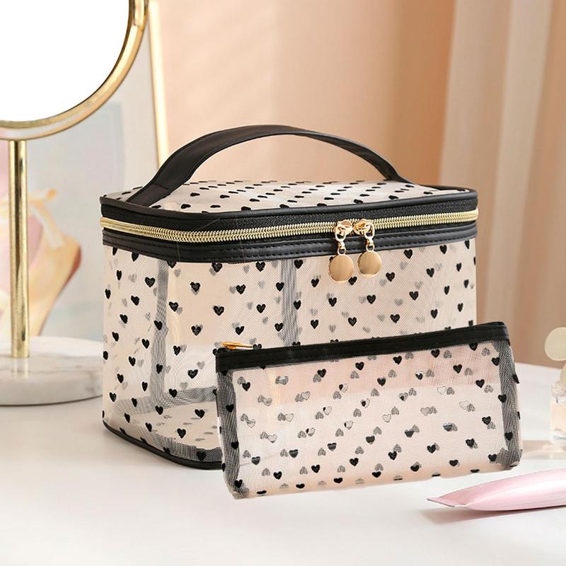 Набор прозрачных органайзеров-косметичек 14х21х14 см + 10х19 см – стиль и удобство в каждой детали! Велика косметичка (14х21х14 см): Просторная и практичная – идеально вмещает все необходимое, подходит для путешествий, командировок, спортзала или пляжа. Универсальное использование – можно использовать как аптечку, органайзер для уходовых средств или даже для аксессуаров в бассейне. Прозрачная структура – плотный сетчатый материал позволяет легко находить вещи, не открывая косметичку. Долговечность – прочные материалы и надежная ручка обеспечивают удобство в использовании в течение многих лет. Маленька косметичка (10х19 см): Компактная и функциональная – идеально подходит для хранения гигиенических мелочей, украшений, мелкой косметики или даже документов. Удобство в повседневной жизни – легко помещается в сумочку или рюкзак, помогая поддерживать порядок в ваших вещах. Стильный дизайн эстетично смотрится с трендовым декором делает ее отличным дополнением к вашему образу. Преимущества набора из двух косметичек: Максимальная организация – маленькую косметичку удобно носить с собой каждый день, а большая – брать в путешествия. Многофункциональность – вместе они покрывают все потребности: от уходовой косметики до аксессуаров и мелочей. Стиль и универсальность – изящный дизайн в темном или светлом цвете идеально подходит для любого случая и станет отличным подарком.
