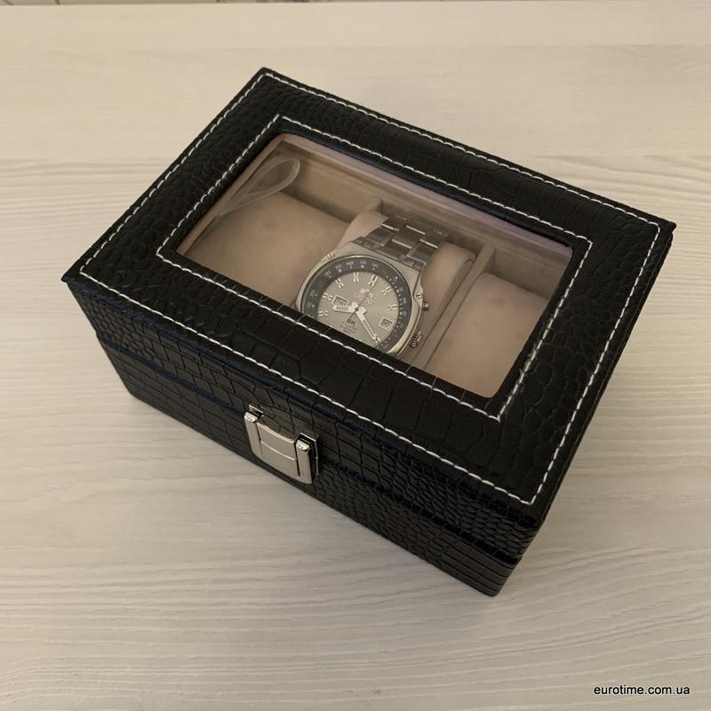 - Шкатулка для зберігання 3х пар годинників. - Скло, шкірзам, металева застібка. - Колір чорний. - Надійно упакована і готова до відправлення. - Фото товару 100% відповідає.