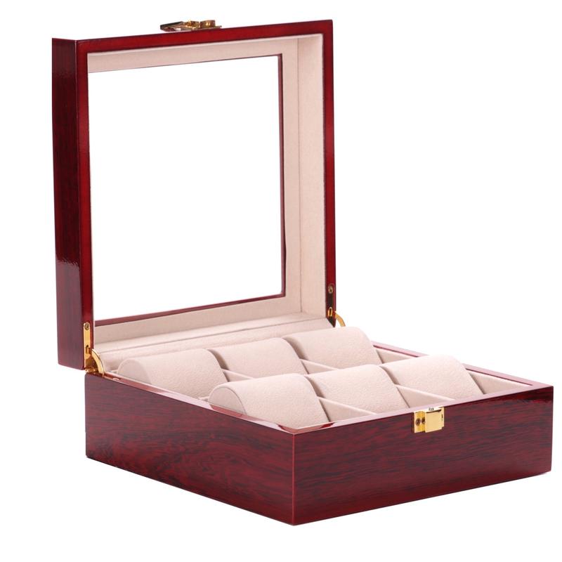 Шкатулка для зберігання 6-ти годинників. Матеріал корпусу - дерево , скло. Колір - бордовий. Інтер'єр - світлий оксамит. Виробник - компанія Craft, Тайвань. Розміри шкатулки: 19,5х21х8,5 см
