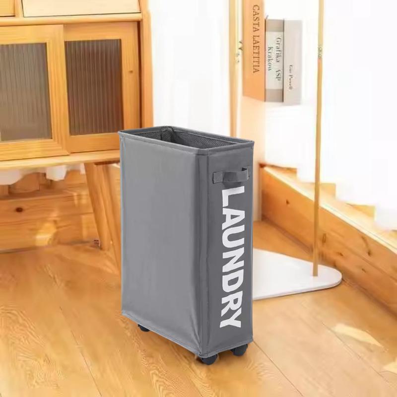 Кошик зі знімним мішком сіткою для білизни, складний на колесах, сірий