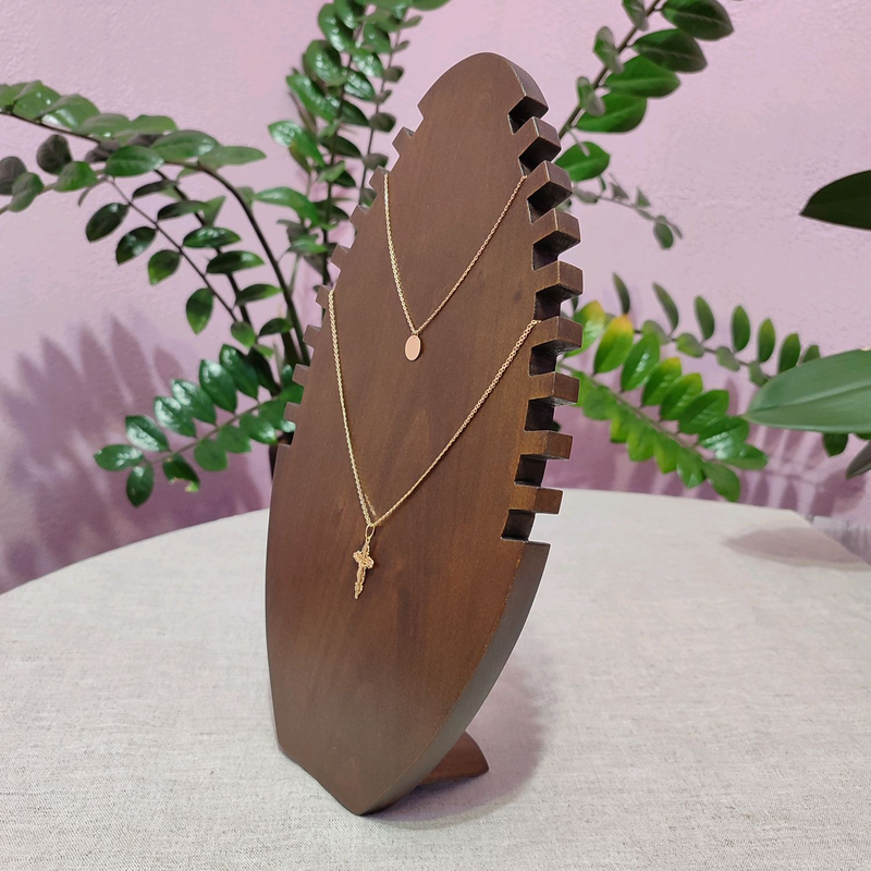 Виробник: Власне виробництво Підставка для ювелірних прикрас, ланцюжків, кулонів, цепочок. Ручна робота. Натуральне дерево. Кількість прорізів під ланцюжки за Вашим запитом. Також можна зробити природного кольору та білим. Висота 33 см. Ширина 17 см