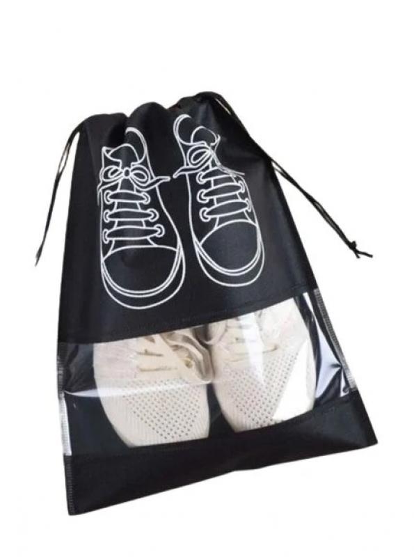 Сумка для взуття на завязках із віконцем чорна 41х31см