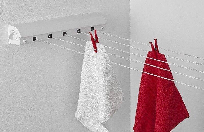 Сушилка для белья и полотенец настенная, инерционная с раздвижным механизмом в ванную комнату Prima Nova B23 состоит из синтетических крепких веревок — 5 шт., довжина мотузок по 4,2 м. кожна, корпус — високоміцний пластик. Ширина сушіння 45 див.