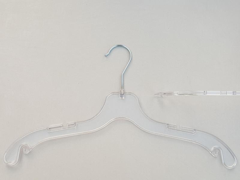 Плічка V-UE43 прозорого кольору, довжина 43 см, ширина плеча 0,6 см. Плечик призначений для легкого верхнього одягу ( блузи, сукні, кофтинки, сорочки тощо), має зачепи для брителей. Зручний і практичний у використанні. Висока якість від кращого виробника в Україні.