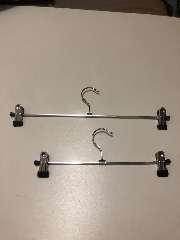 Металлические с мягкими силиконовыми накладками на прищепках- не оставляют отмитин на одежде. Подойдут для магазина. А также для дома. Есть длиннее и есть короче- видно на фото. Качественный металл- не тускнеет и не ржавеет. Цена 65 гр и 55 гр