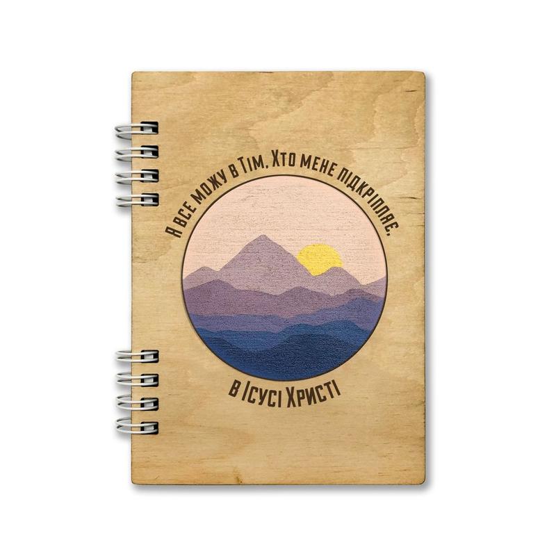 Християнський блокнот з дерев'яною обкладинкою А6 розміром 10х15 см. Середина - паперові листи в клітинку з Біблійними цитатами внизу. Кількість листів до 50 шт. Дерев'яна обкладинка дозволить зберегти ваші нотатки в ідеальному стані. Блокнот стане не лише вашим помічником у щоденних справах, а й нагадуватиме про улюблену Біблійну цитату щодня.