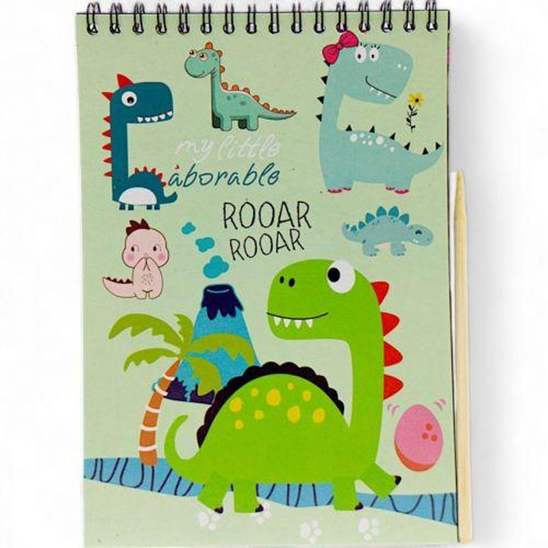 Блокнот-гравюра а5 "динозавр" 8 аркушів, чорні аркуші, деревʼяна паличка(36385)