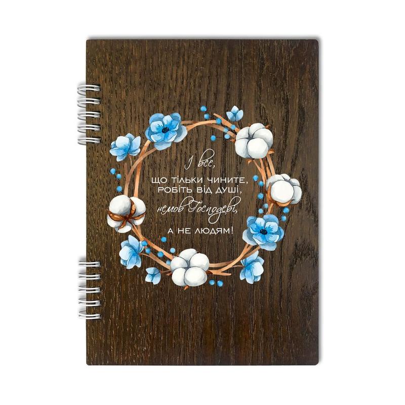 Блокнот с деревянной обложкой а5 "и все, что только делаете, делайте для души" коричневый