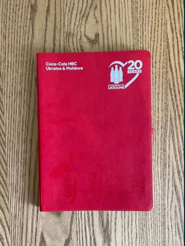 Новий, Оригінальний Щоденник для записів (записник, нотатник) від Coca-Cola™, не датований, що дозволяє гнучко вести свої записи. Сторінки світло-кремового кольору з якісного щільного паперу. На щоденнику є зручна закладка-фіксатор, та кріплення для ручки. Кількість сторінок: 105. Розміри: висота: 240 мм, ширина: 173 мм, товщина: 15 мм. Обкладинка: тверда, водовідштовхувальна. Цей щоденник має яскравий стиль та добротну якість!
