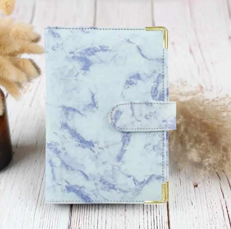 Органайзер для бюджету формату А5 — це зручна і стильна система для планування фінансів і зберігання грошових коштів. Виготовлений з міцного шкірозамінника з мармуровим візерунком і металевими куточками. Ідеально підходить для ведення обліку доходів і витрат, економії та контролю бюджету. Комплектація: 1 x Обкладинка А5 (148 x 210 см) із застібкою на кнопці 12 x Карток для ведення записів із квітковим принтом 8 x Прозорих zip-пакетів з отворами для кільцевого кріплення 1 x Лінійка (15 см) 1 x Вкладиш для дрібниць 2 x Листи зі стікерами (англійською мовою) 4 x Листи кольорових стікерів-міток (закладок) Ідеально підійде для зберігання готівки, банківських карток, розкладу витрат, цілей накопичень та інших фінансових завдань. Характеристики: Формат: A5 Матеріал: шкірозамінник Колір: блакитний з мармуровим ефектом Застібка: кнопка Вставки: знімні, багаторазові Призначення: бюджетний планер, трекер витрат, органайзер для накопичень