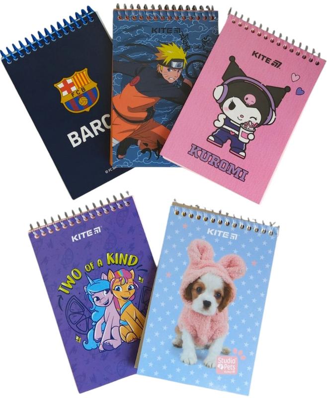 Блокнот KITE А-6 48 аркушів на пружині з кольоровими аркушами.