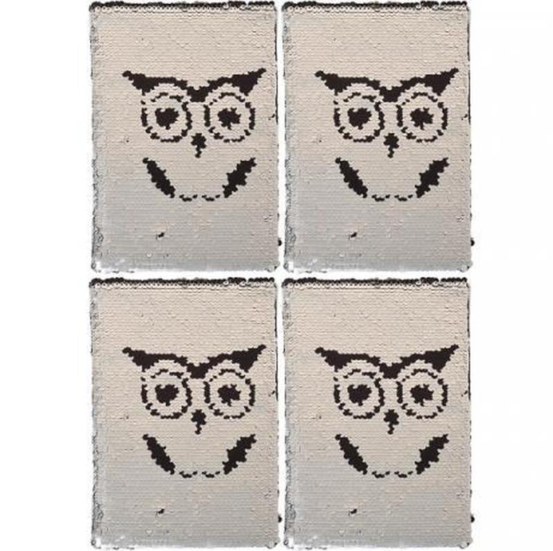 Блокнот с пайетками 21*14,5 см "сова" твердая обложка, клетка a-1