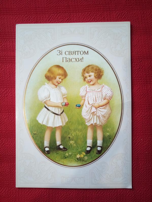 Листівка "зi святом великодня!" б у 2005г картинка дівчинки вінтаж