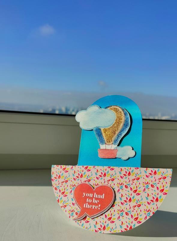 Незвичайного дизайну листівка, що гойдається з боку в бік ( виготовлена з дизайнерського паперу,частково з блискітками )