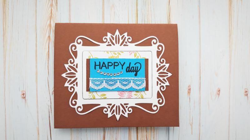 Листівка прикрашена ажурним рамочкою , мереживом і камінцями, розмір 10 х 8,5 см