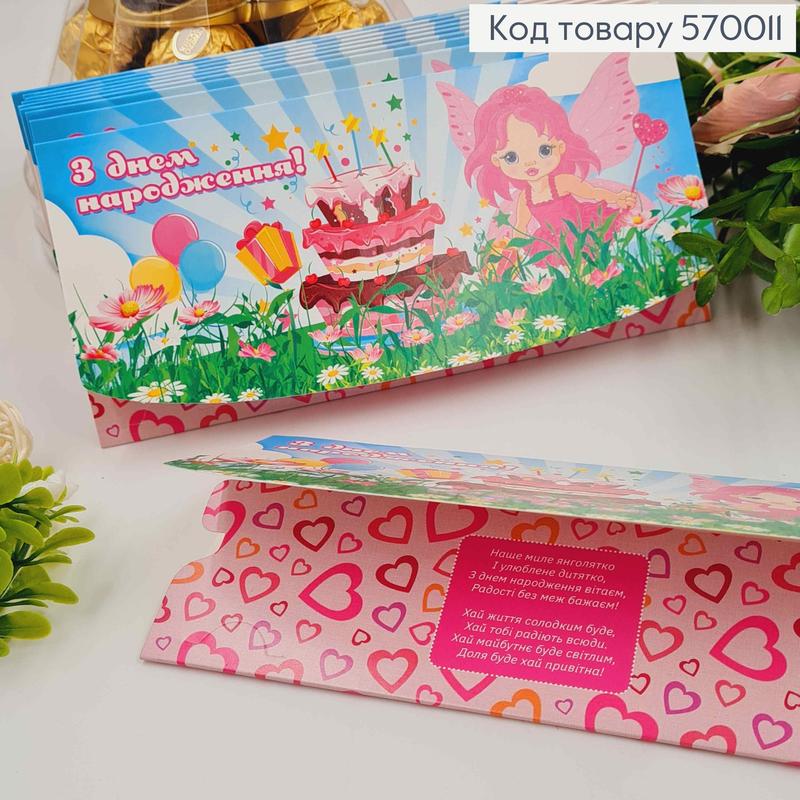 Конверт "с днем рождения", с тортиком и розовой феечкой, 17*8см, 10шт\уп