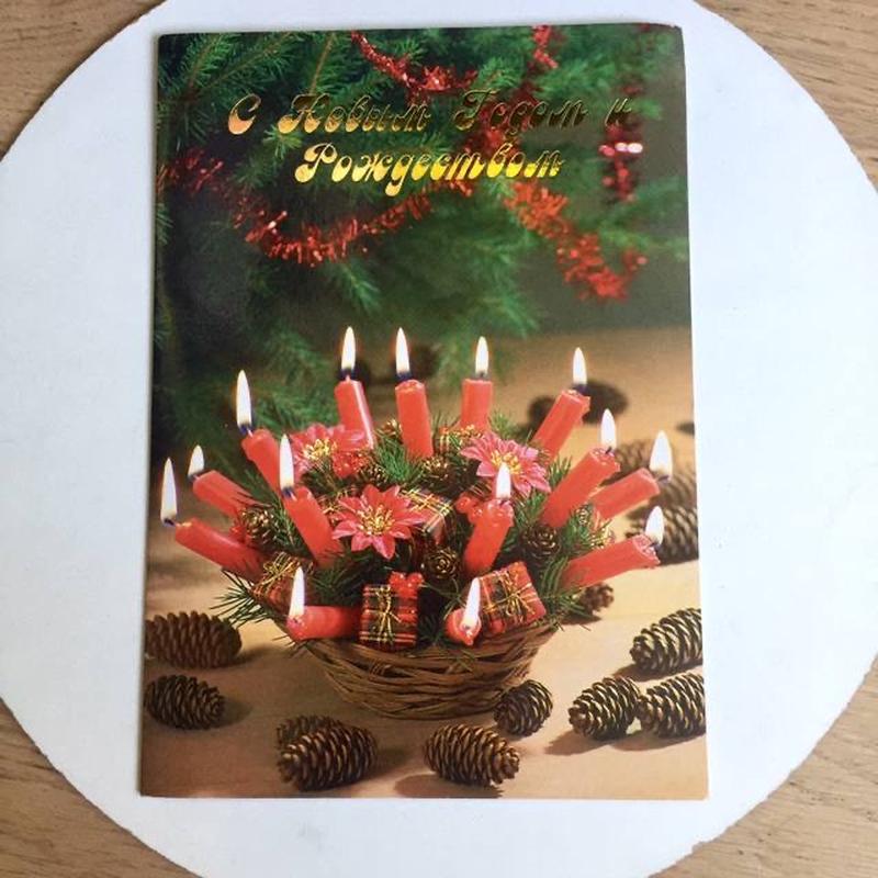 Листівка СРСР з Новим Роком та Різдвом! Подвійна/ Велика/ Нова Надпис золотим тисненням 90-ті роки минулого століття Розмір: 13,4*19 см Є багато інших листівок з Новим роком, більше вінтажних. Також продаю багато різноманітних вінтажних листівок-привітань зі святами, дивіться мої оголошення або запитуйте, буду пропонувати з того, що маю. При купівлі декількох листівок ціни обговорюються.