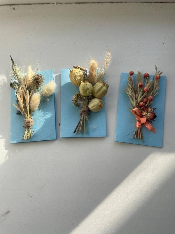 Листівки ручної роботи із сухоцвітами. розмір 7× 5 см Вартість вказана за 1 штуку від 20 штук діє гуртова ціна- 25 гривень за штук у